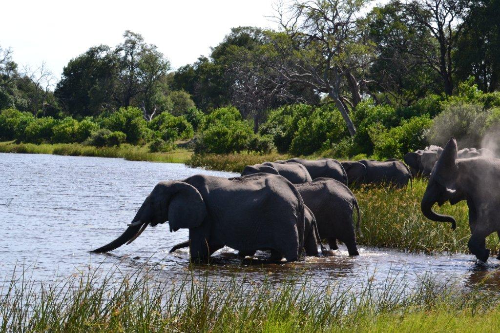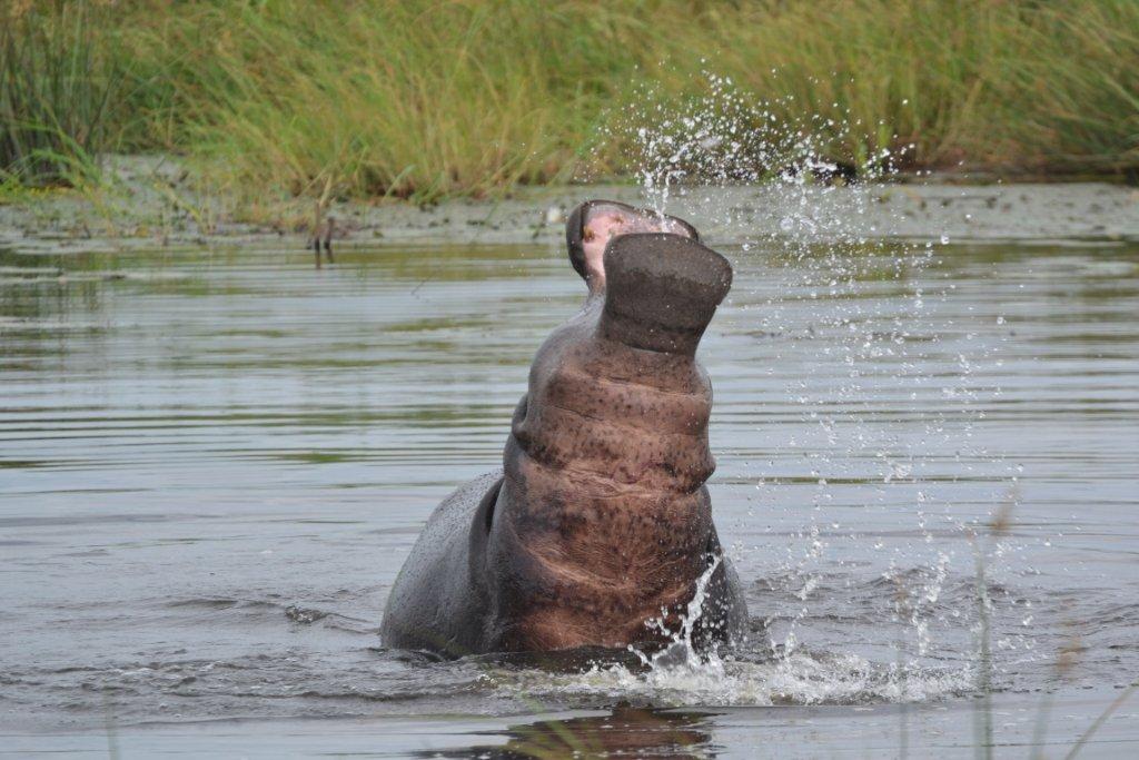 During our stay, we enjoyed amazing service from friendly and entertaining staff, as well as fantastic cuisine for breakfast, lunch, and dinner. One of the members of the group I was leading had her birthday during our trip to Botswana and was thrilled to receive a song, dance, and card from the camp staff! But that wasn’t her only birthday present! She, as well as our entire group, enjoyed fantastic game viewing with sightings of leopard (specifically, a 1-year old male), wild dog on an impala kill, lots and lots of elephants and kudu. We even saw several hippos, one of which mock charged us for five minutes! That was truly an exhilarating experience.