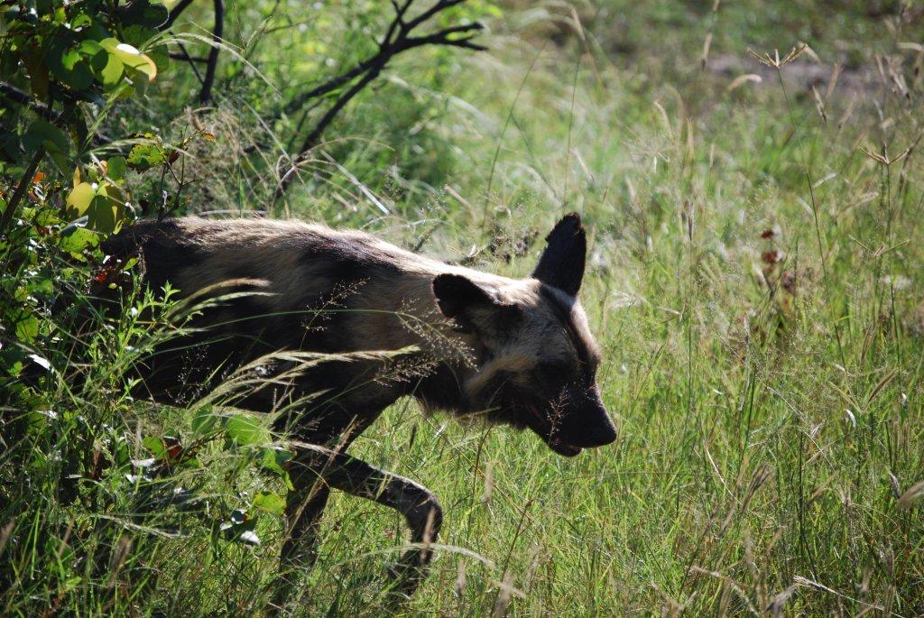 Wild dog on an impala kill
