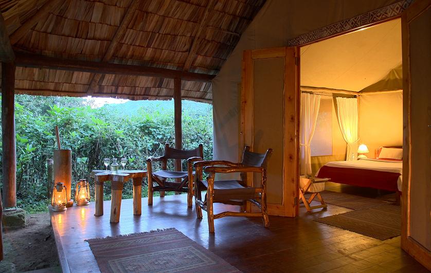 Private patio and bedroom at the Gorilla Forest Camp