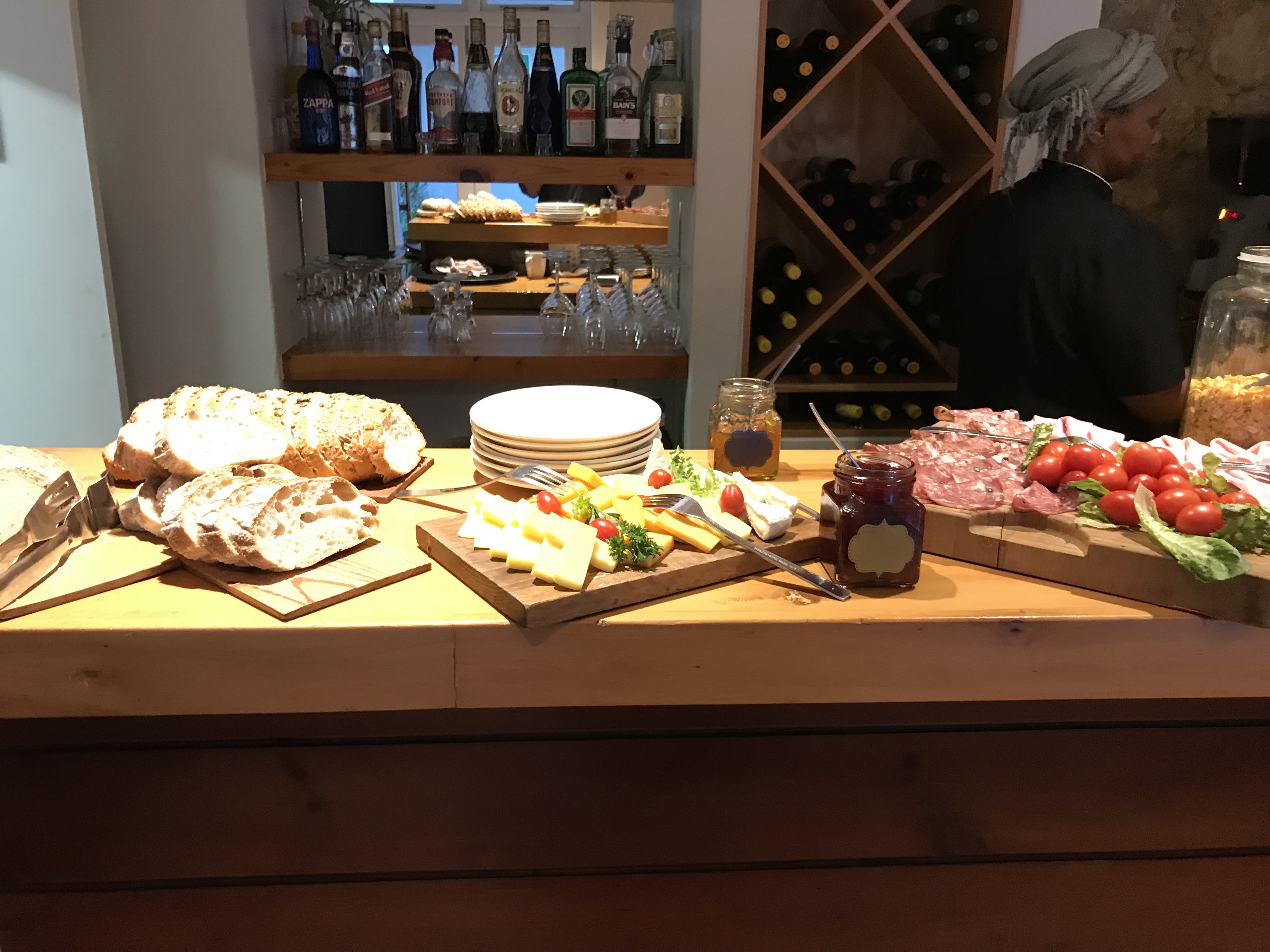 Breakfast — continental as well as seven cooked options — is served in the dining room each morning between 7 and 10 am. The continental is quite filling, a spread that includes fruits, breads, meats and cheeses.