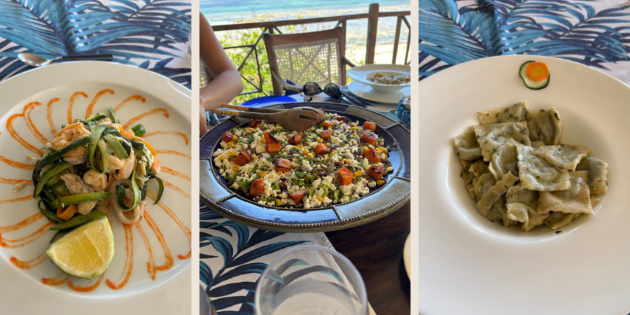 The final stop brought Lori to Diani Beach and Alfajiri Villas, where butler service and beachfront dining elevated the experience to new heights. A welcome drink with Sophia and the butlers set expectations high, and dinner delivered: ginger squash soup followed by a choice of fish and calamari or lemon chicken.