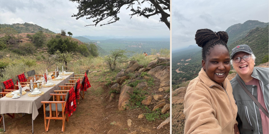 Lunches were strategically served at different locations around the property to showcase the stunning vistas. On her first afternoon, Lori dined under trees overlooking a salt lick, watching giraffes wander within 50 feet of her table, a reminder that in Kenya, your dining companions are often as memorable as the meal itself.
