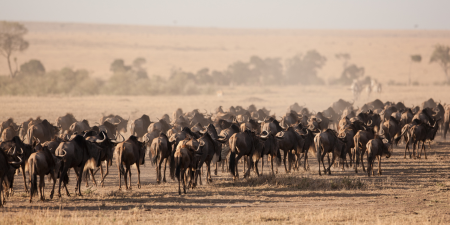 As the short rains end and the southern grass is exhausted, the herds begin their long march north through the western Serengeti. This is the quieter middle act, vast columns of wildebeest stretching to the horizon, covering ground steadily.