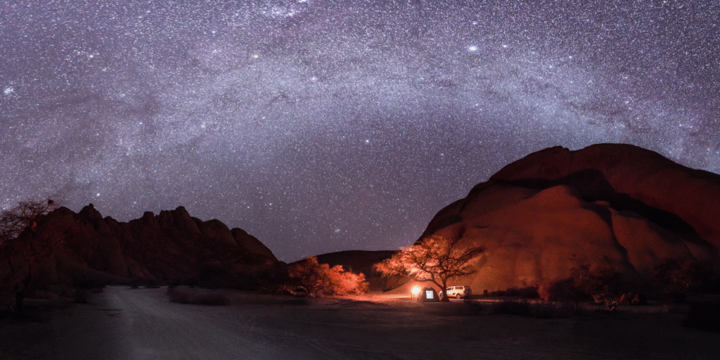 No light pollution. No distractions. Just you, a cozy bed under the open sky, and the entire Milky Way above you. Namibia is home to one of the few Gold Tier International Dark Sky Reserves, making it one of the best places on Earth for stargazing.
