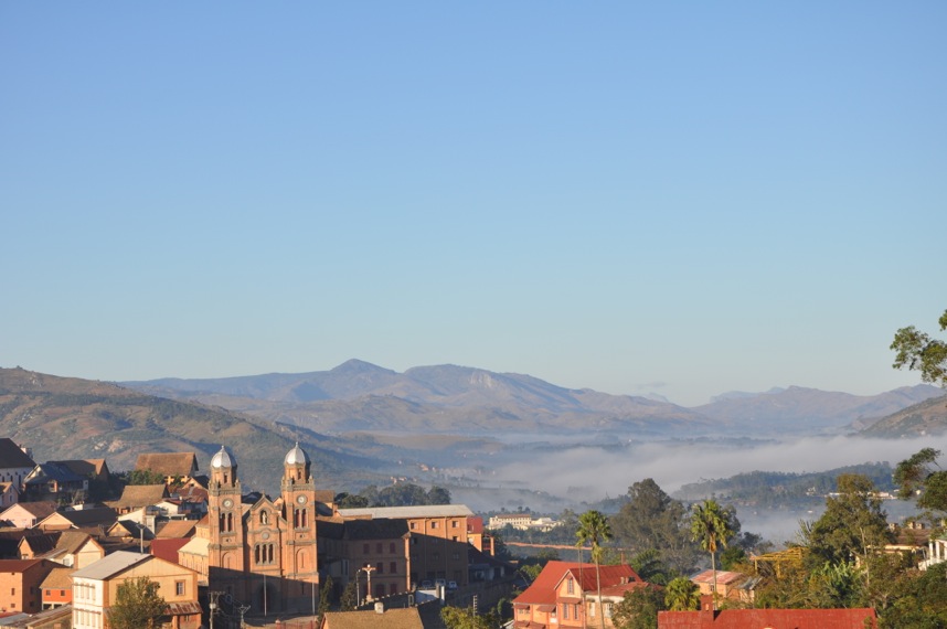 We awoke to one of the most beautiful mornings! Fog sat atop the rolling hills of the Fianarantsoa countryside as the sun began to rise. Our bus brought us to one of the highest points in the city to take pictures (see below).