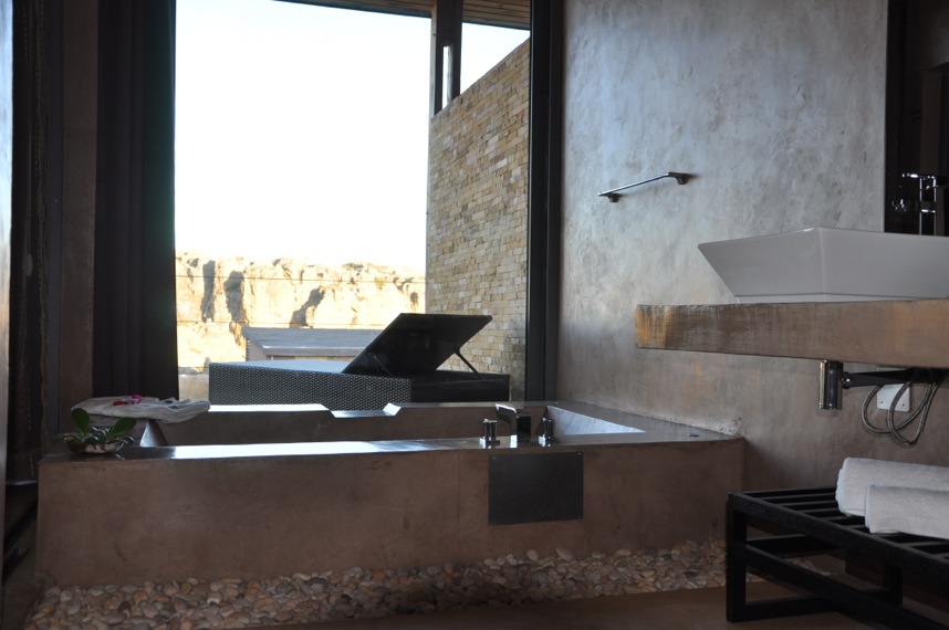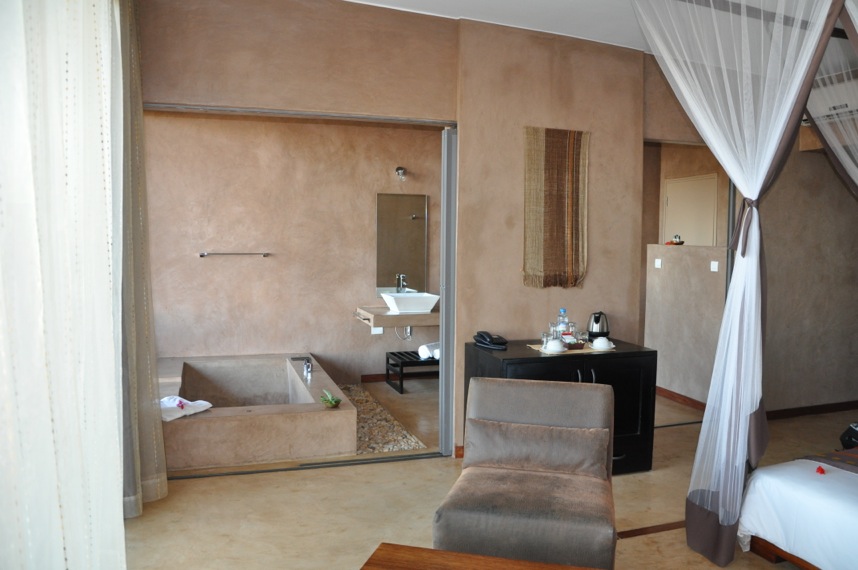 We then drove a short distance to our hotel, Isalo Rock Lodge. One of our favorite accommodations in Madagascar, Isalo Rock Lodge is situated in a remote area, surrounded only by rocky landscape. The modern décor, with textures and colors inspired by Isalo’s topography, was refreshing and lavish (see below for pictures).