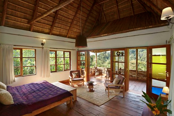 Bwindi Lodge: Located within the Bwindi forest, the Bwindi Lodge is famous for the surrounding wildlife spotted at the lodge, including gorillas, chimpanzees, monkeys, and birds. And for some of these wildlife visitors–such as the gorillas–they like to spend the night at the lodge (don’t worry, they sleep outside, of course!).