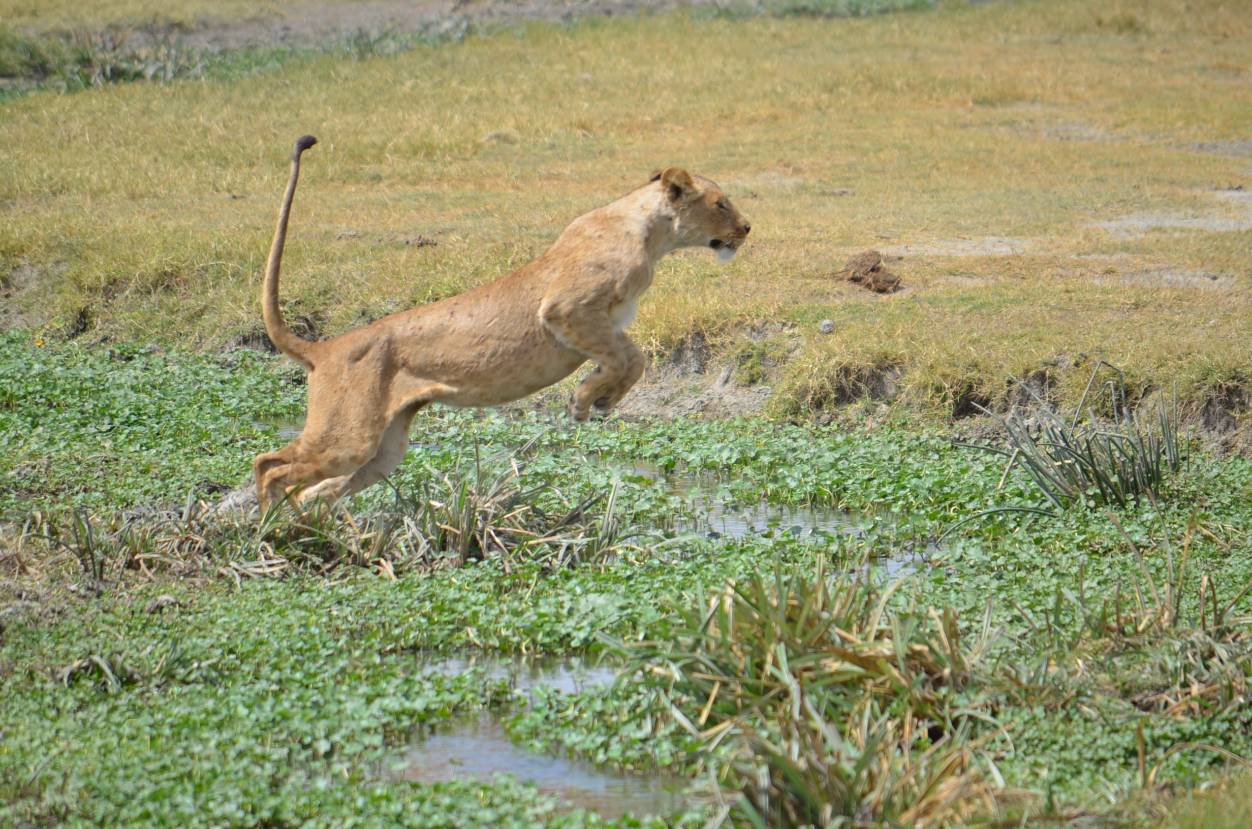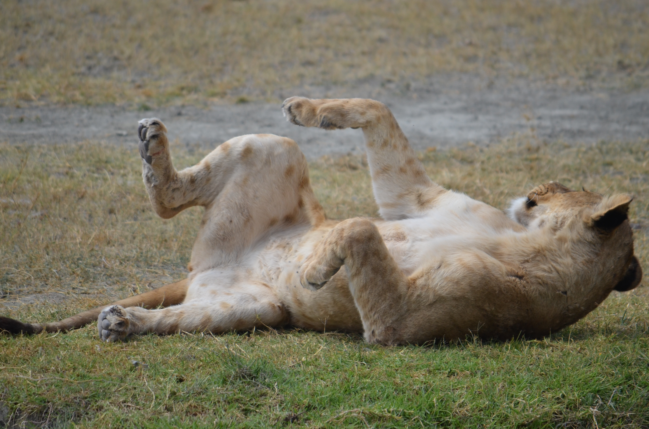 As we drove around during the morning, we had some special interactions with a pride of very lazy lions. They were very sleepy, until one got up and started to jump across little puddles. They sure don’t like water.