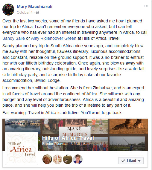 Call us at 1-800-940-9344 or email us at hoainfo@hillsofafrica.com – we can’t wait to help you plan your vacation of a lifetime.