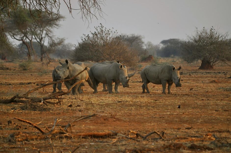 Today (this would be day 3 of our trip) we embarked on yet another exciting game drive, coming across a white rhino just a few minutes into our safari. While watching the white rhino, our guide, Time, received a call that a black rhino had been spotted in the area. We attempted to track the black rhino but never ended up spotting him. We came across a group of six white rhino instead and were able to stop the vehicle and take a short walking safari to get closer to the rhinos. We watched the peaceful rhinos for about a half hour before getting back in our vehicle.