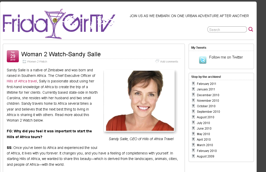 Hills of Africa Featured on Friday Girl TV