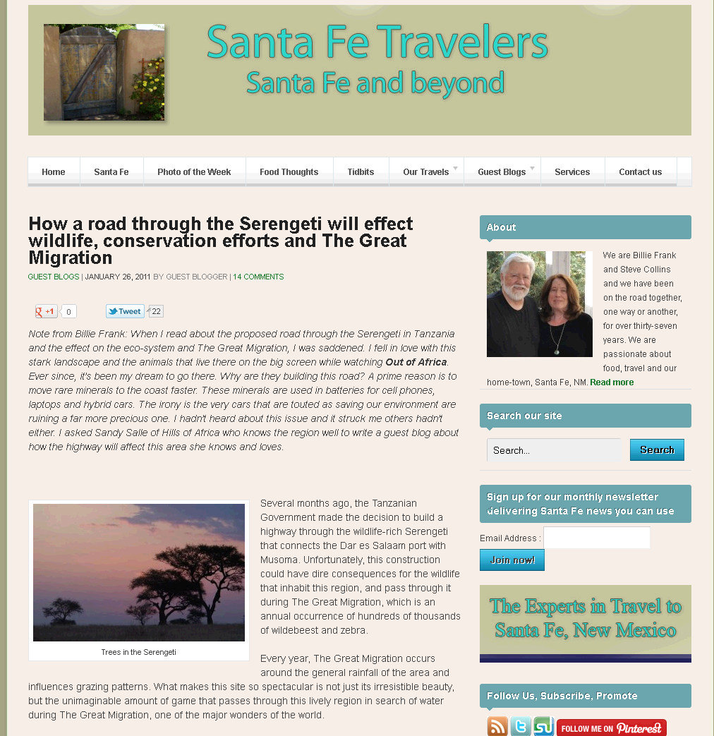 Hills of Africa Featured on Santa Fe Travelers